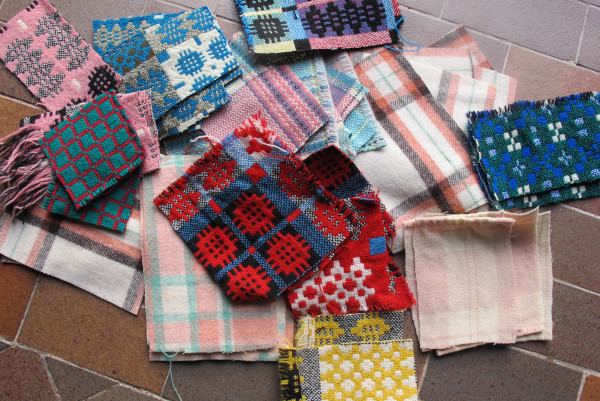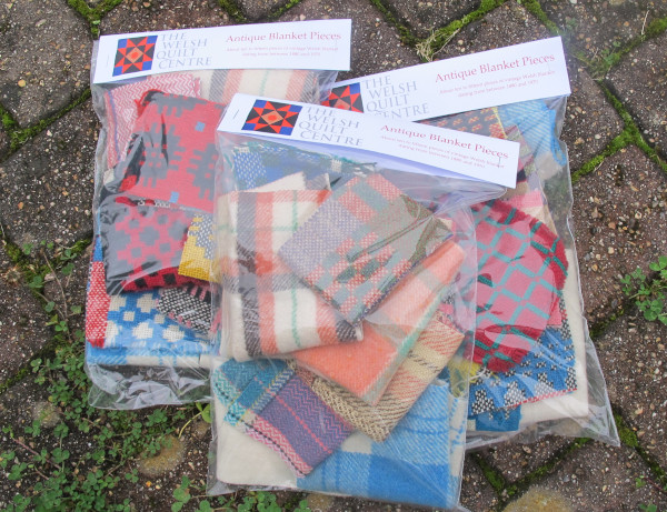 Approximately 12 - 15 pieces of vintage and antique blanket fabric.